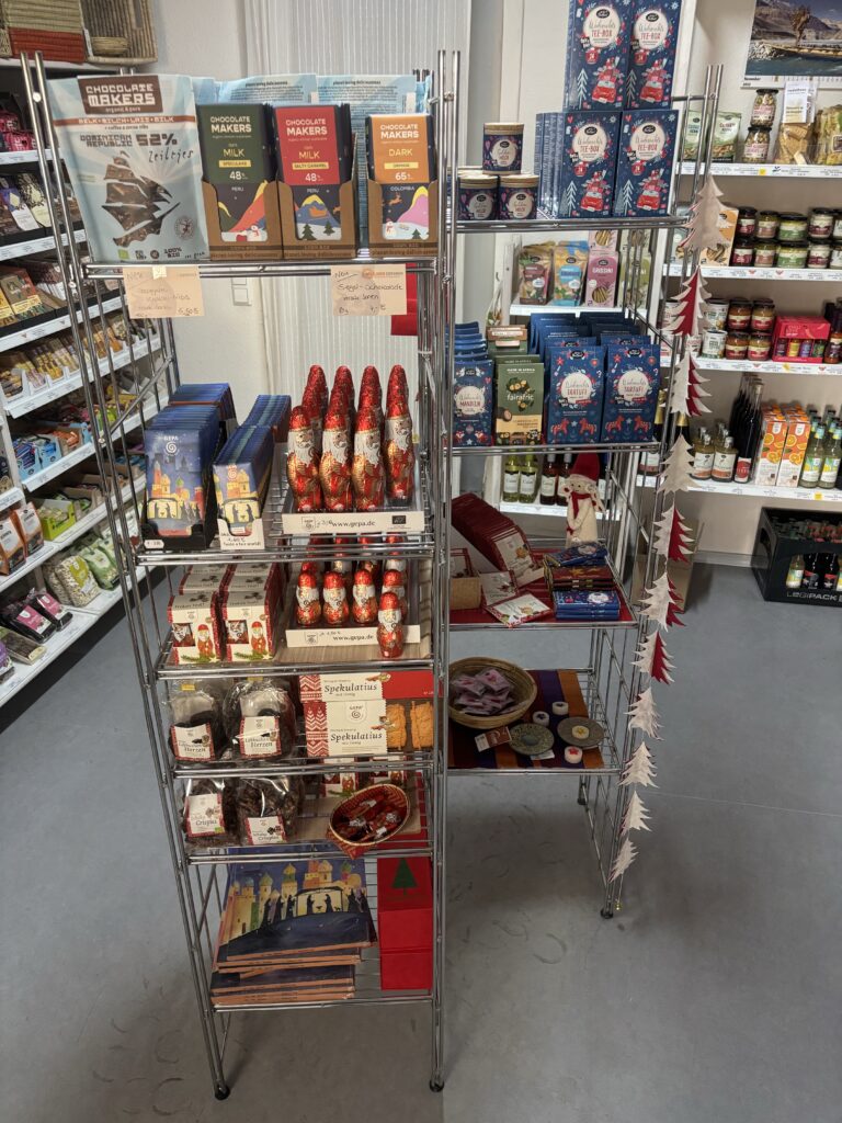 Im Lahrer Weltladen Esperanza am Marktplatz gibt es seit einiger Zeit einen umfangreiches Sortiment an Geschenkartikeln jeder Couleur. Vom Adventskalender über den Schoko-Nikolaus bis zum Glühwein ist alles dabei.